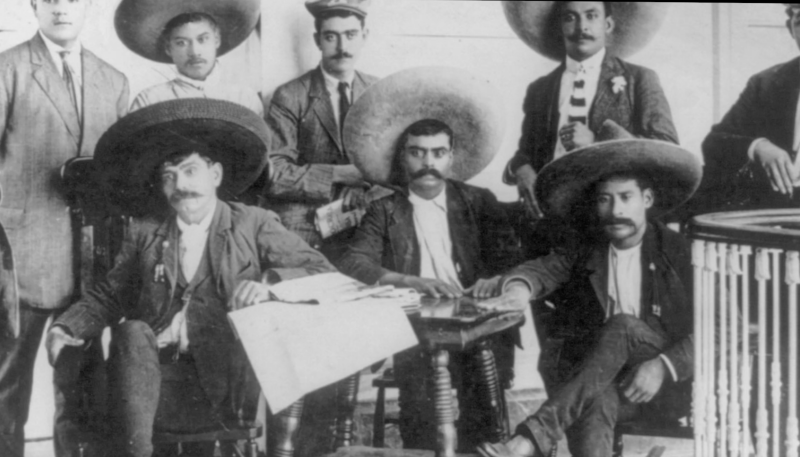 Upper right: Pancho Villa leading the charge. Right Emiliano Zapata (seated,center). Bottom: Few know how involved Mexican women were in fighting for justice. This photograph is representative of thousands of women who valiantly took part.