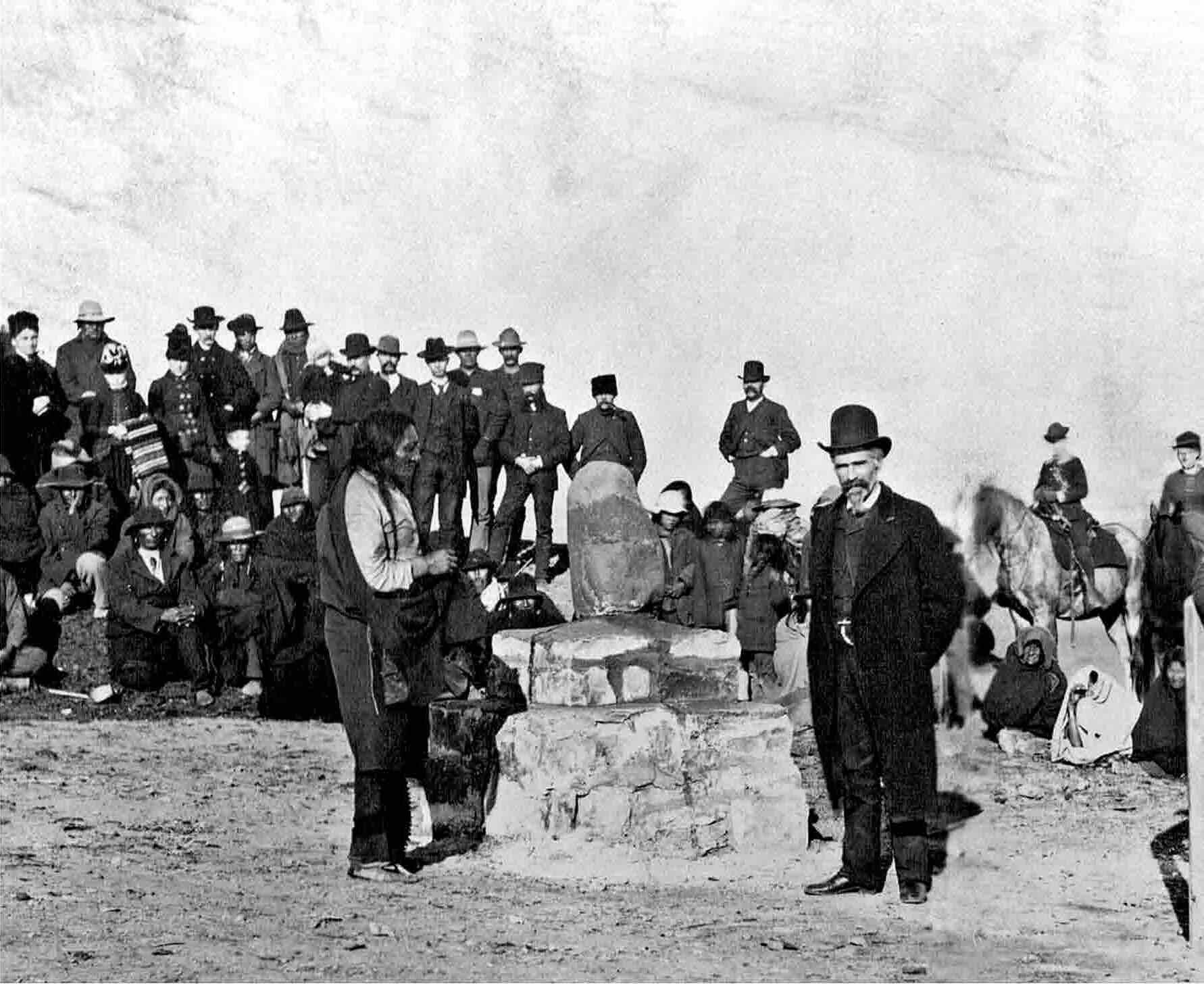 Above: Sitting Bull (left) standing across from reservation agent.